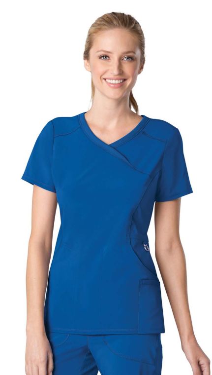 Cherokee Infinity 2625A Certainty® Mock Wrap Top: - Mock wrap top - Two set-in front pockets, a logo O-ring above left pocket, left scissor pocket, one interior pocket - Front and back princess seams - Side vents - Stretch rib knit at the center back panel gives this top its slimming shape and allows for extra movement and comfort - Center back length = 26.0”