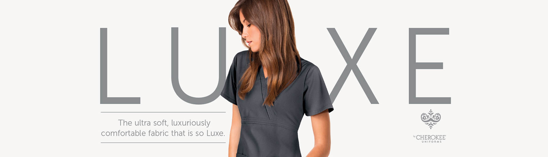 LUXE Scrub Uniforms from Cherokee - Elegant styling and quality for the style-and brand-conscious professional. Luxuriously comfortable, Classic design, Flattering fit. LUXE SPORT - Sport-influenced, contemporary design for the stylish, active professional. Athleisure inspired, Premium fabric and style, Fashion & performance.