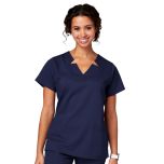 77% Polyester, 20% Rayon, 3% Spandex w/ Antimicrobial Finish.